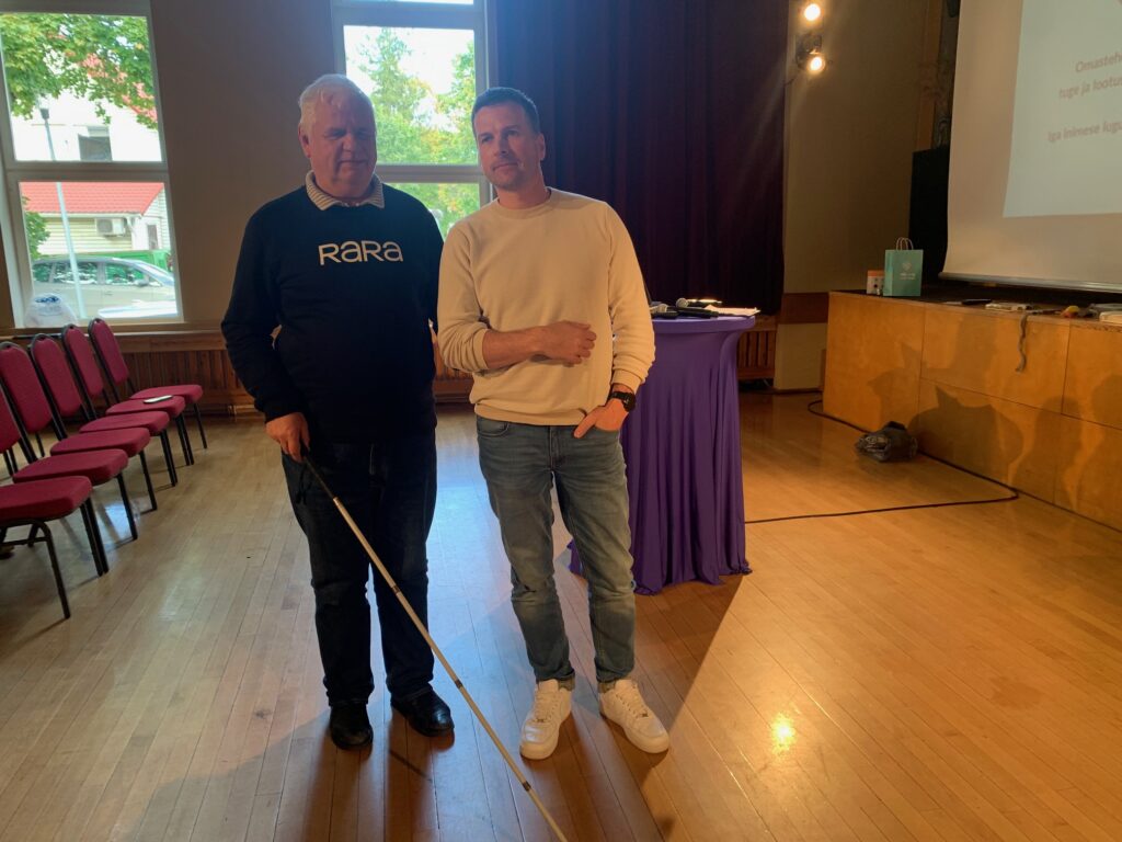 Rapla Kultuurikeskuse suures saalis saadab patsiendipäeva juht, Raplamaal hästi tuntud raadiohääl Ott Ojand mu lava ette. Tal on õige saatmisvõte selge – on kunagi vaegnägemisega kogemusnõustajat usutlenud. Kirjeldan, miks see võte on just niisugune – tema liigub pool sammu ees, mina hoian käest küünarnukist veidi kõrgemalt kinni. Saatmise jäädvustab Elviire Kirst. Asetan tavapärased tutvustusmaterjalid lava äärele ritta ja hakkan ligikaudu 65le jälgijale rääkima.