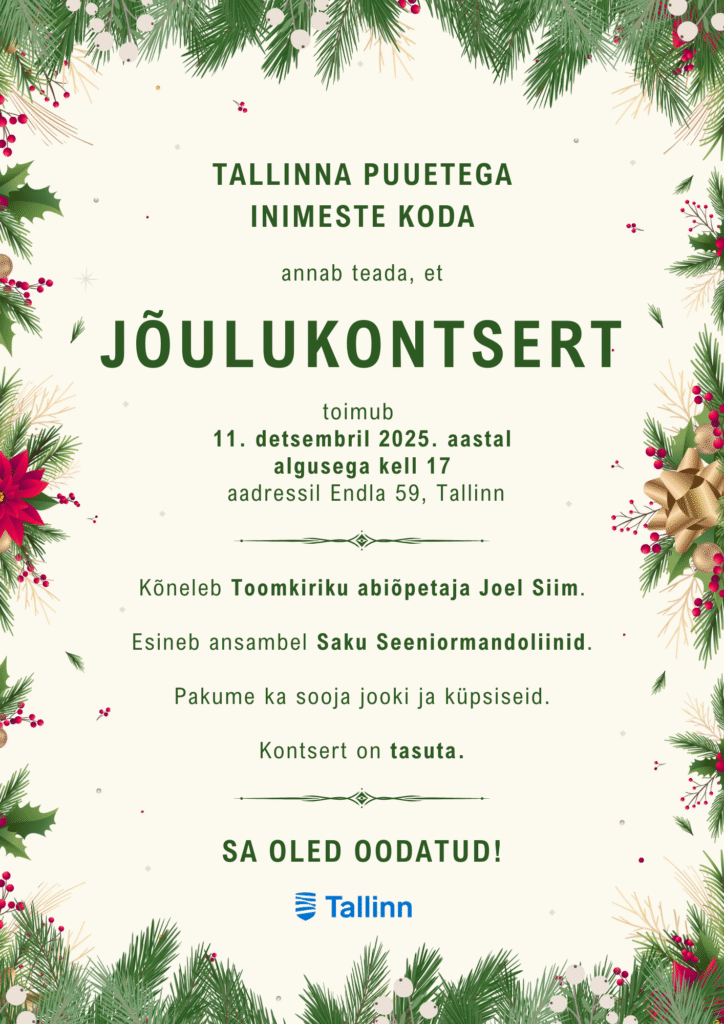Tallinna Puuetega Inimeste Koda kutsub jõulukontserdile